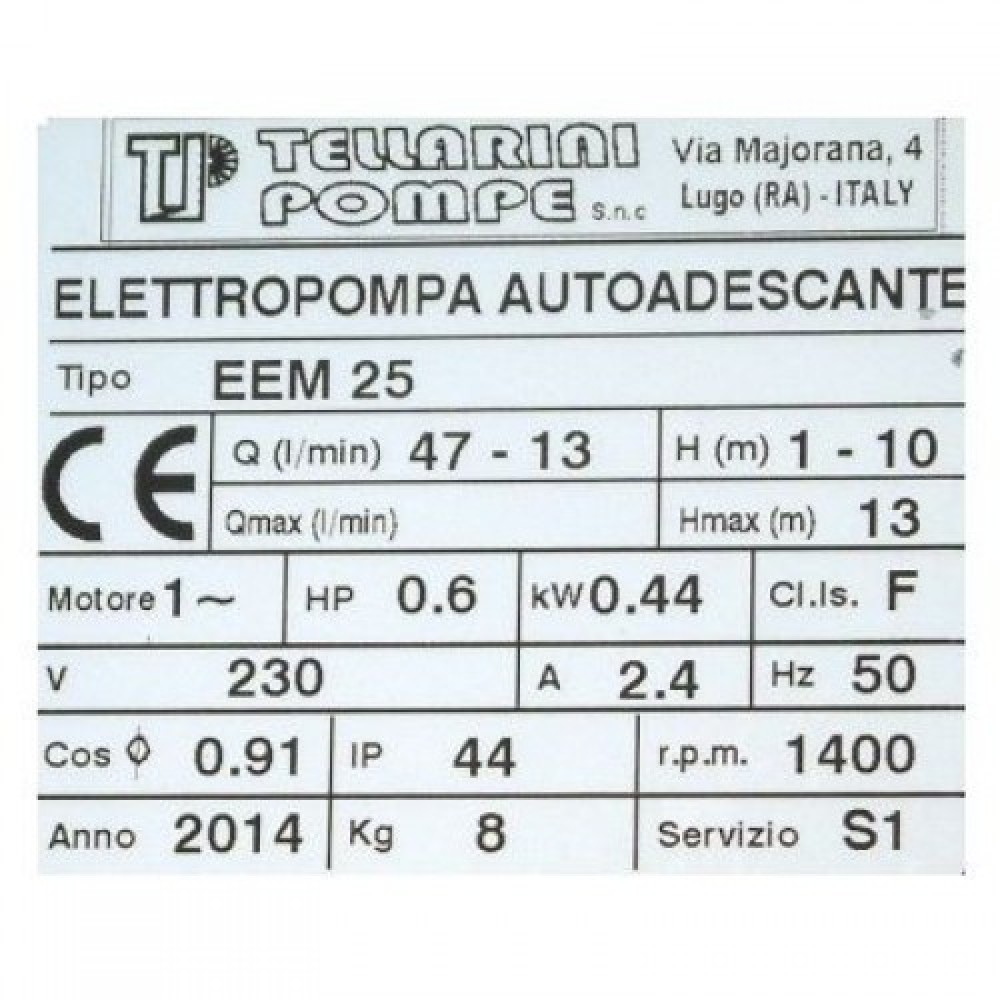 Αντλία Μεταγγίσεων EEM 25 0.6hp/1400rpm TELLARINI