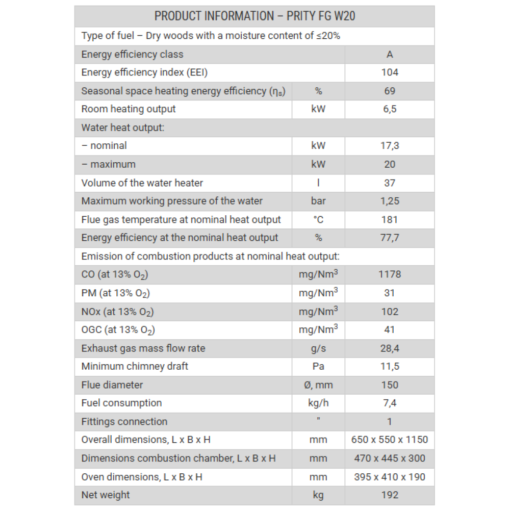 Ενεργειακή Ξυλόσομπα Καλοριφέρ Με Φούρνο FG W20 PRITY