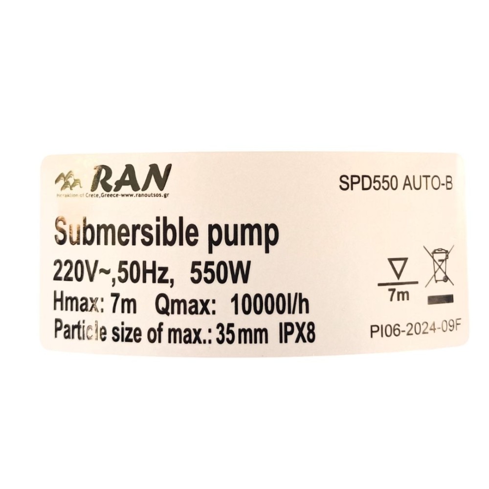 Αντλία Υποβρύχια Λυμάτων RAN SPD550 AUTO-B 0,75HP