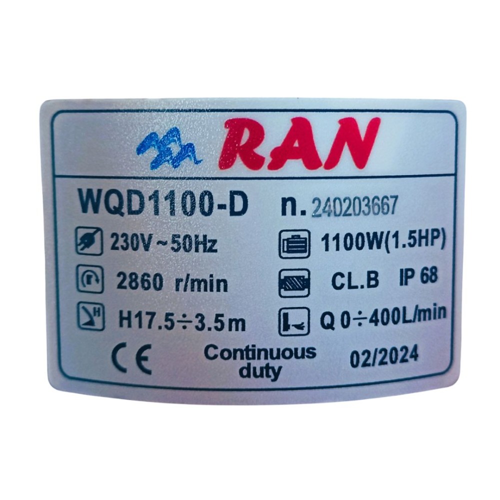 Αντλία Υποβρύχια Λυμάτων RAN WQD1100-D 1.5HP