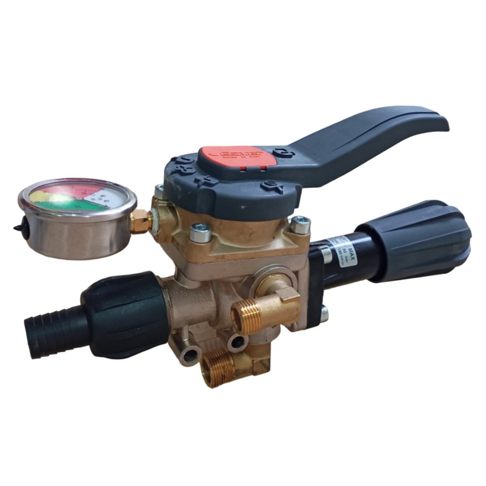 Δύο εξόδων χειροκίνητη μονάδα C/W MAX ελέγχου πίεσης. Οι παραλλαγές «C» είναι εξοπλισμένες με μετρούμενο by – pass, για να διατηρείται σταθερή η πίεση κατά το κλείσιμο ενός τμήματος.